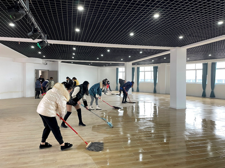 自公司搬家以来,六楼一直处于闲置的状态,为庆祝春节的到来,“玫瑰自愿者”们要让六楼焕然一新,于是,她们欢天喜地的开始了情况卫生大扫除。在运动的历程中,女职工们积极加入,有的拿扫帚、有的拿着抹布等清理工具,各人凭据划分的劳动区域分工协作,对地板的灰尘、带有装置印记的玻璃门、闲置的空房间以及六楼卫生间进行清除。虽然在腊八节当天天气依旧严寒,但每个人都顾不上天气的严寒,都陶醉在劳动的快乐中,现场一片热火朝天忙碌景象。不到一会儿时间,各人的脸上充满了汗珠,后背也开始冒汗了,有的人手臂带着伤,也忍着不适积极投入到紧张的劳动中。