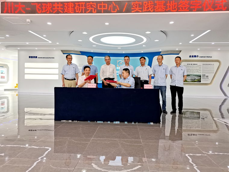 旅行完生产车间后,飞球集团总经理樊平、常务副总经理曹国强、副总经理姚兵、总设计师钟胜宏,四川大学机械工程学院院长王杰、党委书记樊庆文、党委副书记张毅出席了签约仪式。此次签约仪式,飞球集团与四川大学是在关于共建实践基地的协议基础上,双方本着效劳企业,满足工业需求,提高教学质量和科研水平,提升立异能力为目标,针对新产品、新市场开发,科研结果转化、专项课题研究、项目结果申报和人才培养等方面开展切实而深入的相助。仪式上,樊平、王杰代表双方对“四川飞球技术中心”、“卓越工程师实践基地”进行了揭牌。随后,与会人员进行了深入座谈交流。