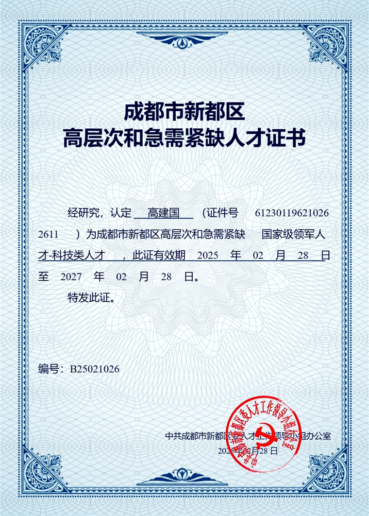 高建国体现:获此殊荣,深感荣幸与责任重大。在未来的征程中,将秉持初心,领导公司团队深耕技术立异,不绝提升公司的焦点竞争力。同时,积极响应新都区的生长需求,增强与各界的交流相助,分享经验。连续深化与高校、科研院所的协同立异,为推动区域工业升级孝敬坚实技术力量。