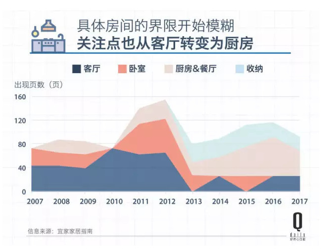 2013 Äê¿Õ¼äÓÃ;ģºýÖ®ºó£¬³ø·¿Öð½¥³ÉΪÁË¡°Ð³衱£¬2014 Ä꿪ʼËüµÄÒ³ÊýÁè¼ÝÁËÆäËû¹¦Ð§ÇøÓò¡£2017 ÄêÒ³Êý×î¶àµÄ³ø·¿Õ¼ÁË 42 Ò³£¬¶ø×îÉÙµÄÔ¡ÊÒÖ»ÓÐ 11 Ò³¡£