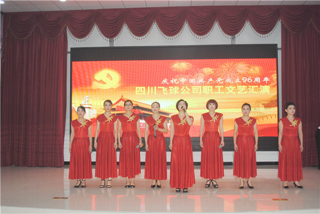 本网讯(通讯员报道)为庆祝建党96周年,回首历史,展望未来,四川飞球(集团)有限责任公司党委于7月1日在大山铺江南春集会厅举办了庆祝中国共产党建立96周年职工文艺汇演。飞球公司党委委员、公司领导、各部分卖力人、工会委员等近100人加入了本次汇演。