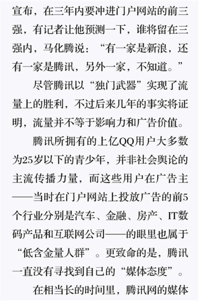 深读之后发明,其实全书真正的焦点在于透过腾讯可以视察到的中国企业逻辑,其中许多基于国情而降生的特殊能力,已往或受诟病或被追捧,而本书作者可以以越发客观的姿态对其进行剖析,这无疑是一种今世创颐魅者和企业家应当学习的姿态和能力。
