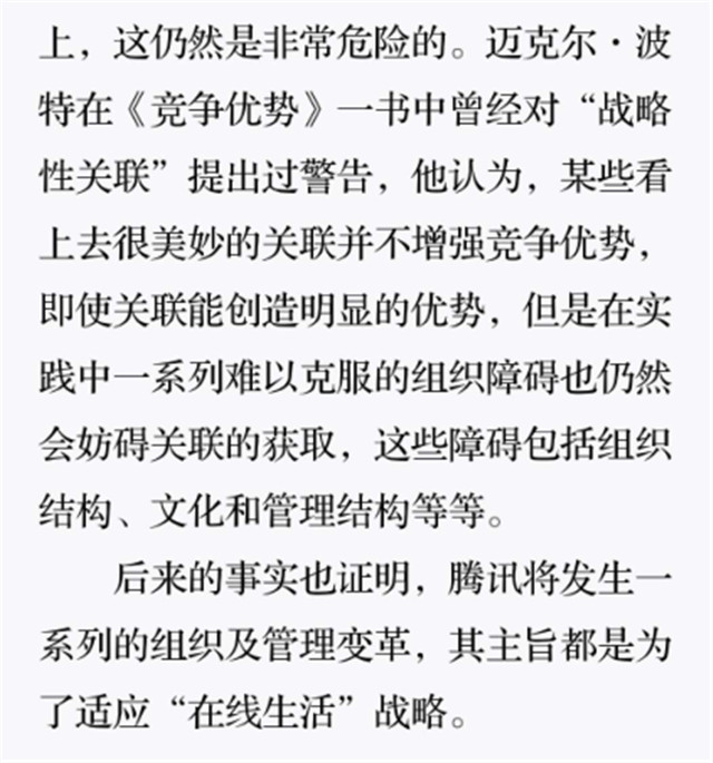 深读之后发明,其实全书真正的焦点在于透过腾讯可以视察到的中国企业逻辑,其中许多基于国情而降生的特殊能力,已往或受诟病或被追捧,而本书作者可以以越发客观的姿态对其进行剖析,这无疑是一种今世创颐魅者和企业家应当学习的姿态和能力。