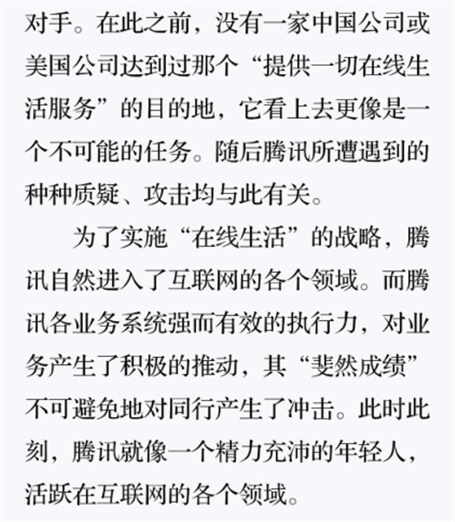 深读之后发明,其实全书真正的焦点在于透过腾讯可以视察到的中国企业逻辑,其中许多基于国情而降生的特殊能力,已往或受诟病或被追捧,而本书作者可以以越发客观的姿态对其进行剖析,这无疑是一种今世创颐魅者和企业家应当学习的姿态和能力。