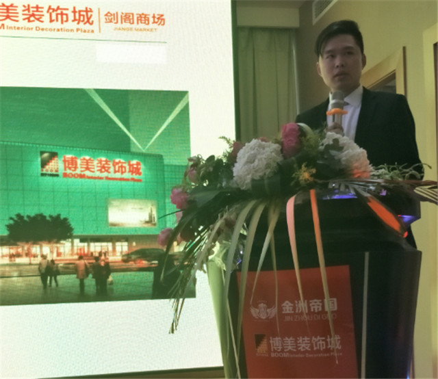 在集会上,博美公司副总经理张军详细介绍了博美公司的生长历程和公司以往所取得的荣誉,从专业的运营团队、专业的运营方法、优质的效劳包管等方面进行多角度、全方位的战略剖析,让准备入驻的商家能更全面的了解到博美公司的企业文化和品牌看法,为以后顺利开展经营事情提供了良好开端。博美剑阁商场经理李平山对剑阁项目做了全面介绍,从项目的地舆优势、物业优势、经营团队优势,与古板建材市场的比照等方面做出解析。